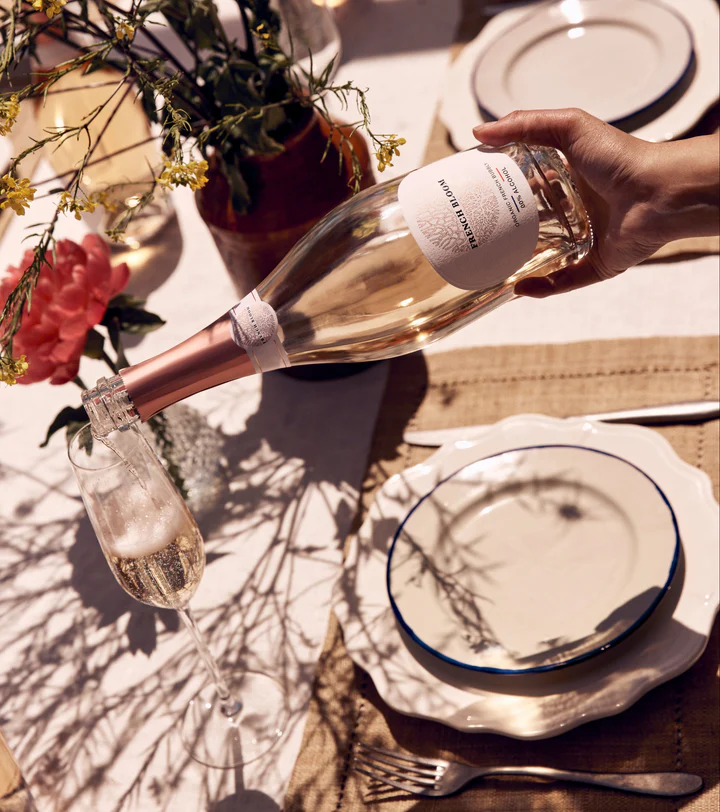 To enjoy French Bloom differently, pour the Cuvée into a wine glass filled with ice, garnished with raspberries or a slice of strawberry.